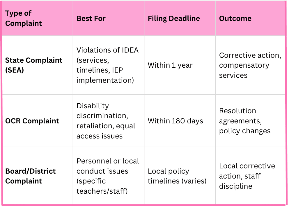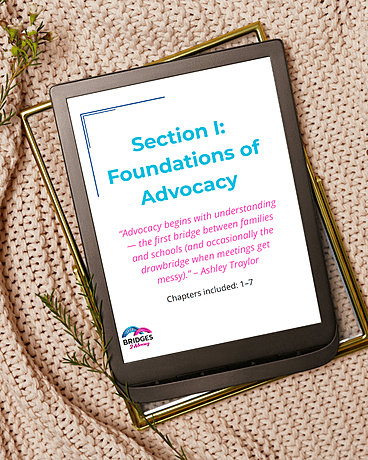 Every chapter is clearly labeled and includes checklists, visuals, and templates. Keep it on your desk, in your meeting bag, or right beside your laptop. Parents and advocates alike use it as their go-to reference binder during school meetings and trainings.